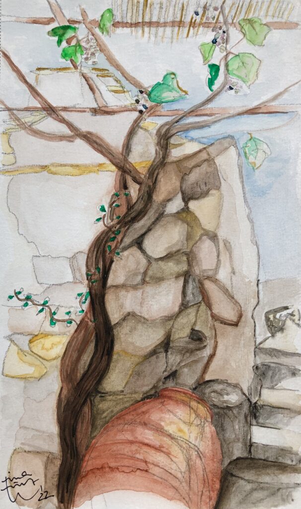painting . greek wine at noon Watercolour on paper 180g/sqm Dimension W / H 15x25cm . 30 EUR unframed.