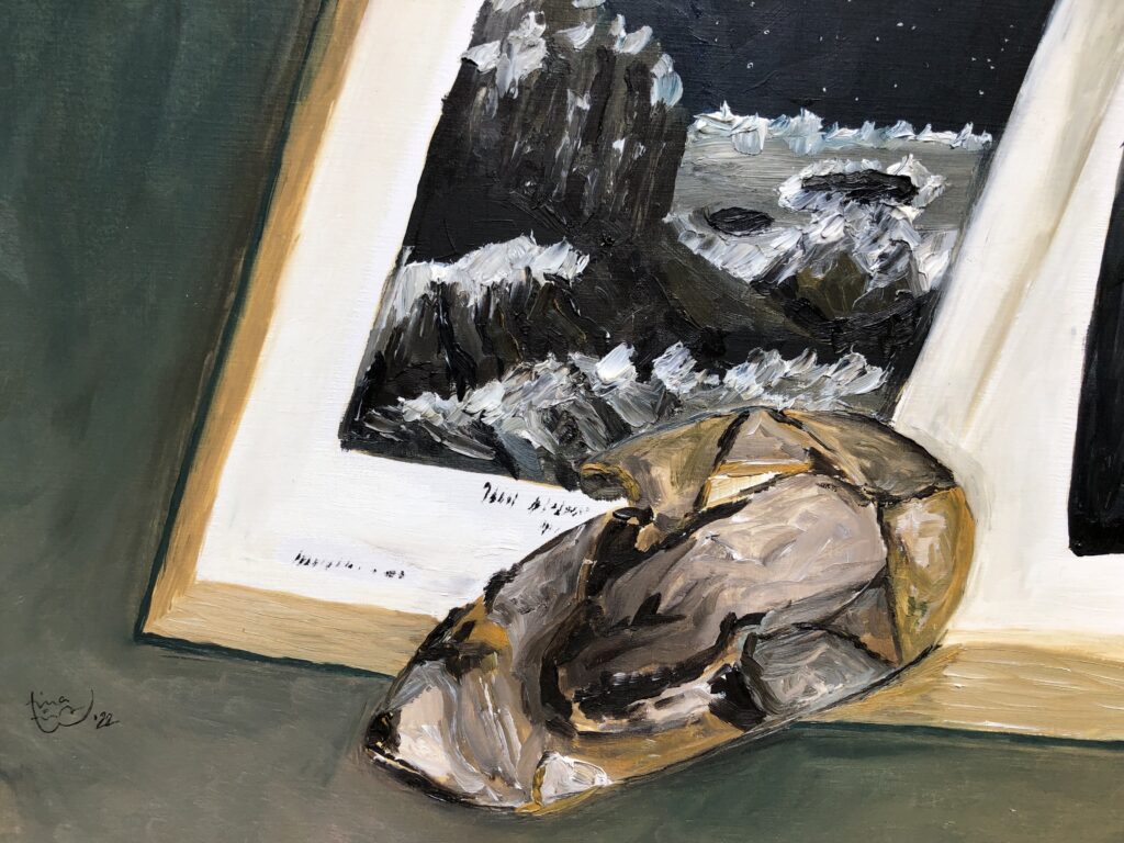 painting . walking on the moon Oil on Special paper with linen embossing for oil painting 240g/sqm Dimension W / H 35x30cm . 50 EUR unframed.