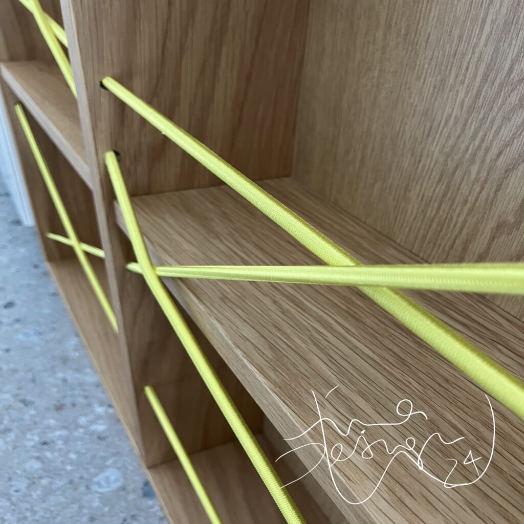 Clear lines, clean surfaces, modern simple and calm look . oak veneer combined with lacquered mdf .