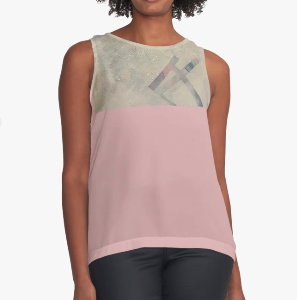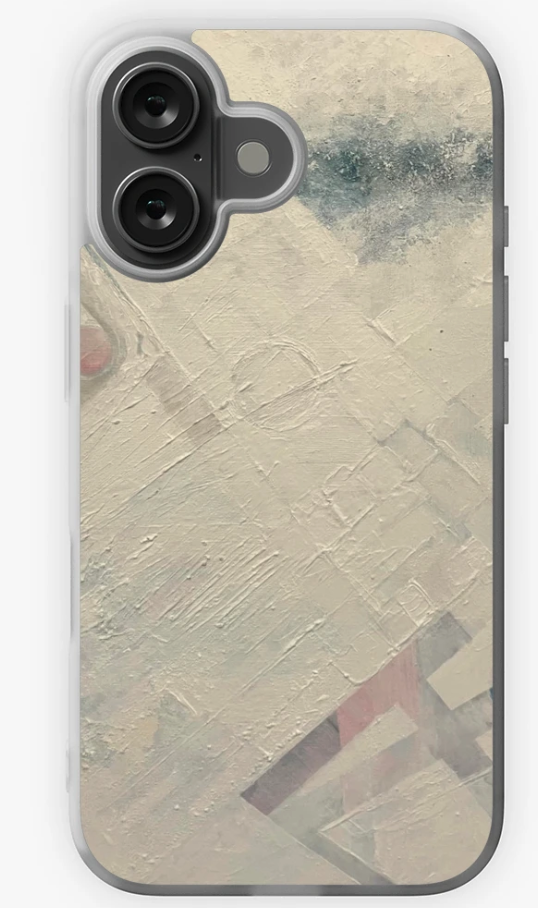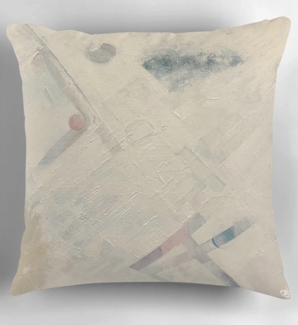 “This abstract painting explores the mood of apricity — the fleeting warmth of the sun in winter — through a dialogue of straight lines, circles, and crossings. Soft layers of white, light blue, and pink create a subtle luminosity, while sand adds a tactile presence that grounds the work in material reality. Within this interplay of geometry and texture, the theme of female emergence unfolds: resilience rising through fragility, presence emerging from silence, and inner warmth breaking into light.”